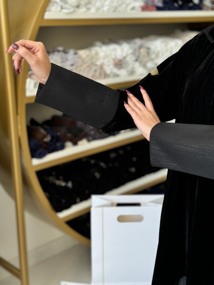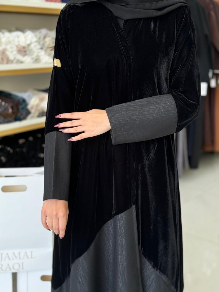 elegant collection - عباية لينا بقماش مخمل وكريب سلك اسود