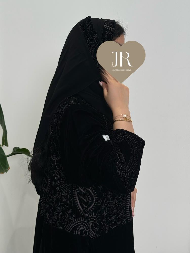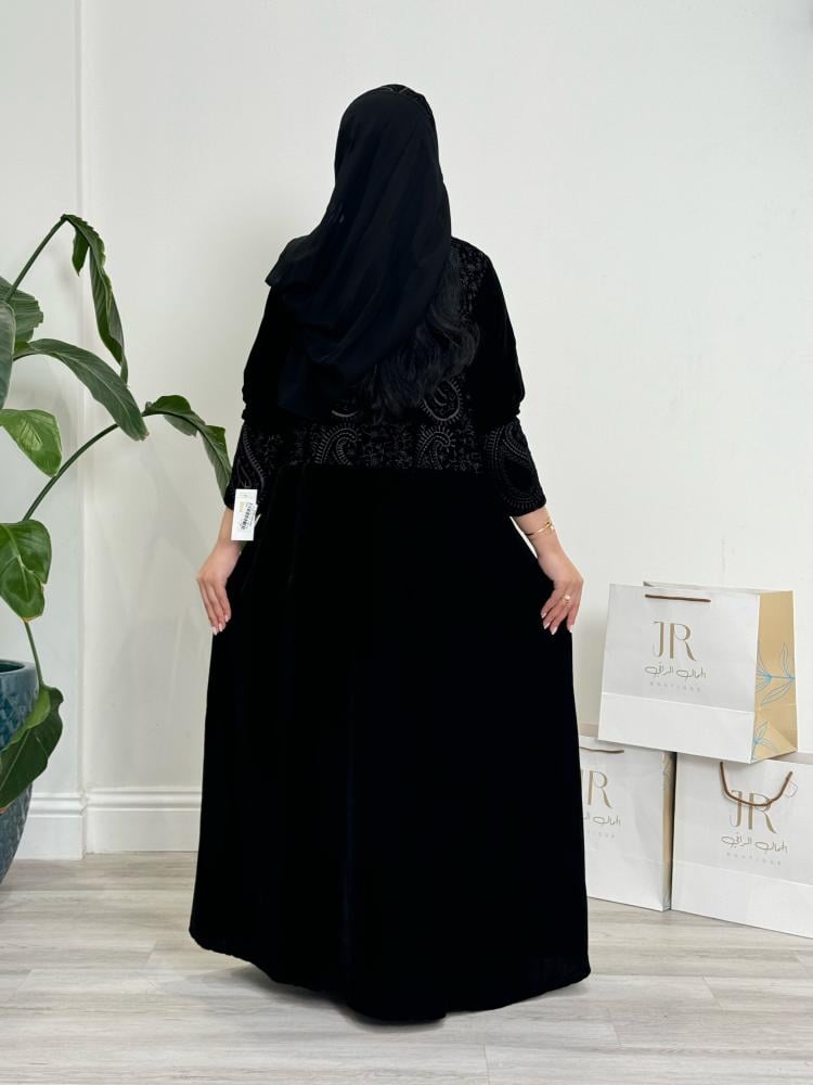 Winter collection ا عباية بلقيس مخمل كوري تطريز رمادي