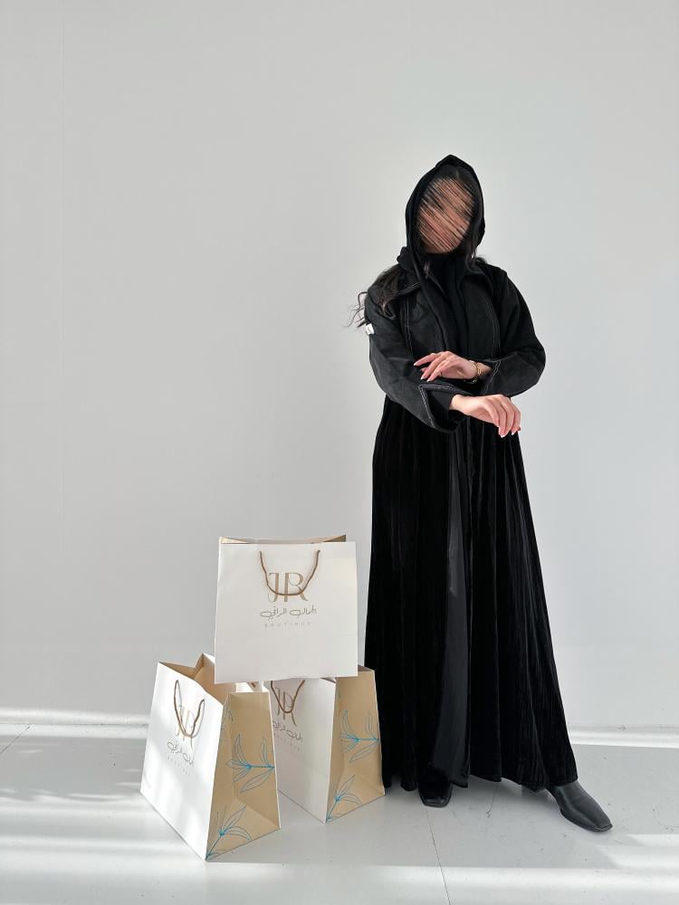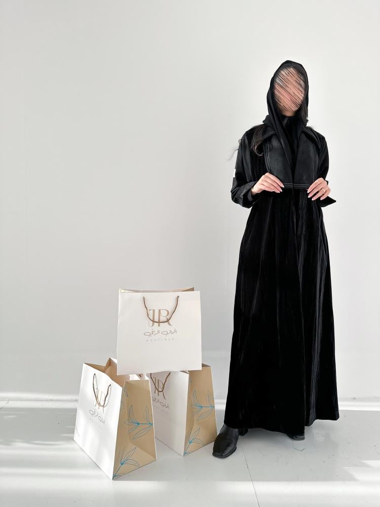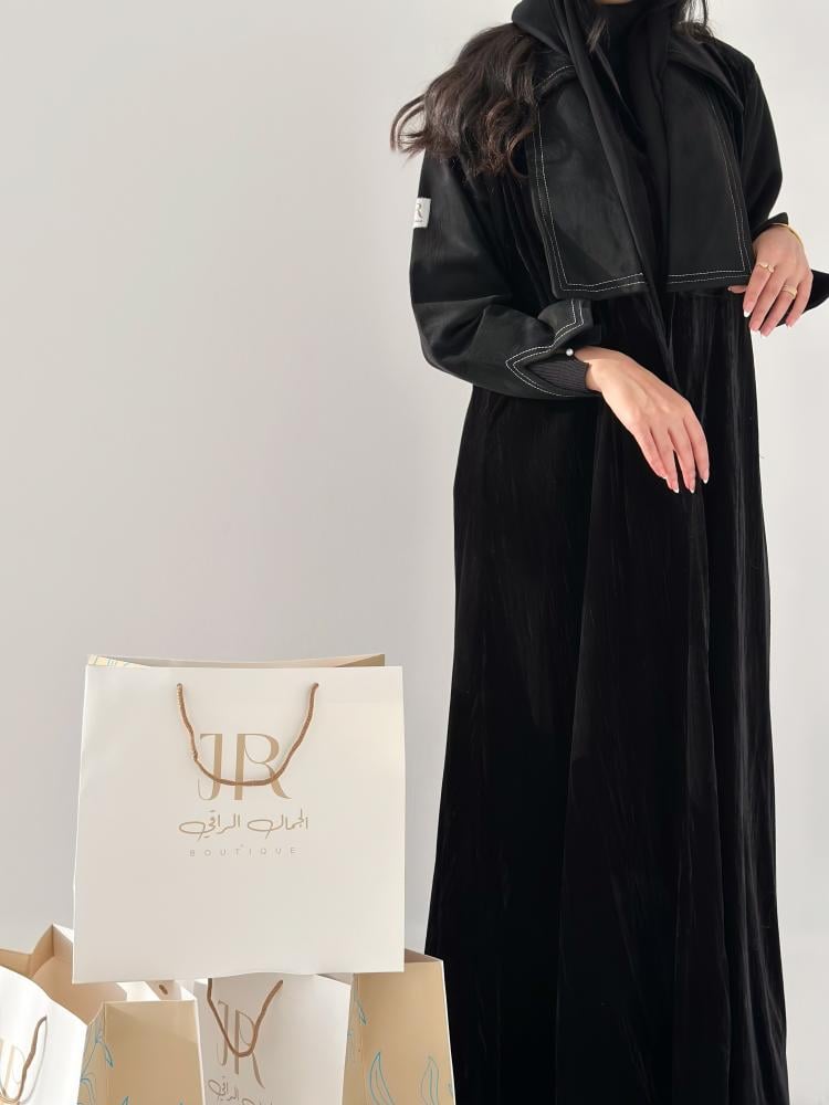 Winter collection ا عباية سيلا مخمل تدخيلات شامواه - اسود