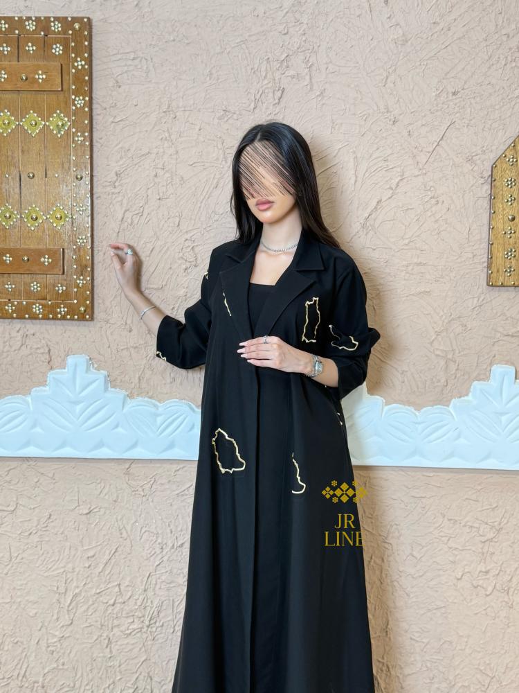 اليوم الوطني | عباية عزة بقماش كريب الاناقة بتطريز ذهبي بياقة
