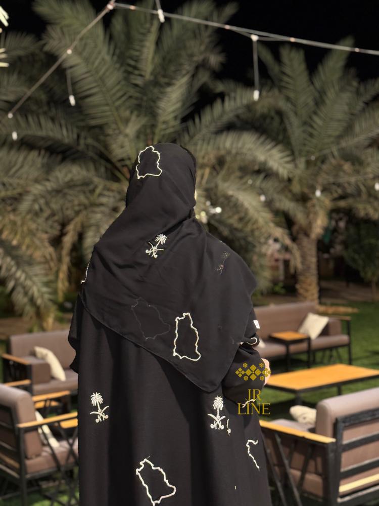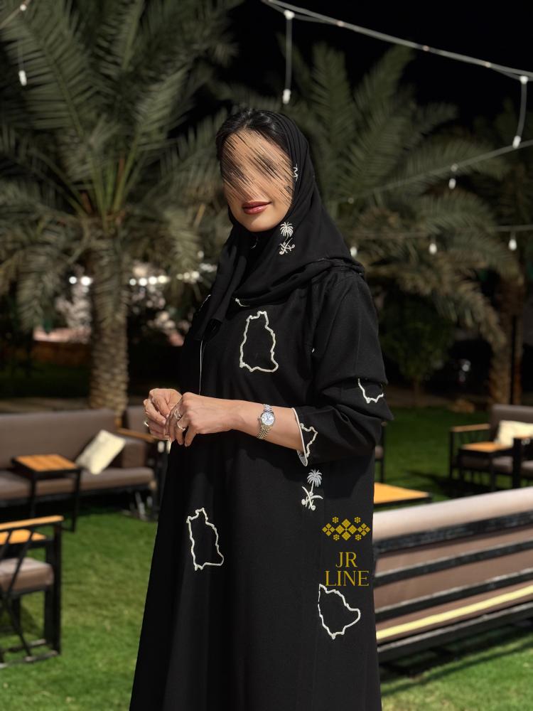 اليوم الوطني | عباية عزة بقماش كريب الاناقة بتطريز فضي