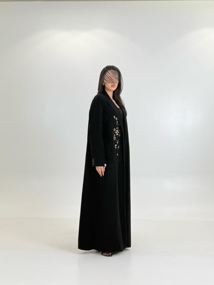 بليزر | عباية جوليا بقماش كريب رموش مزين بحياكه يدويه وشك كحلي
