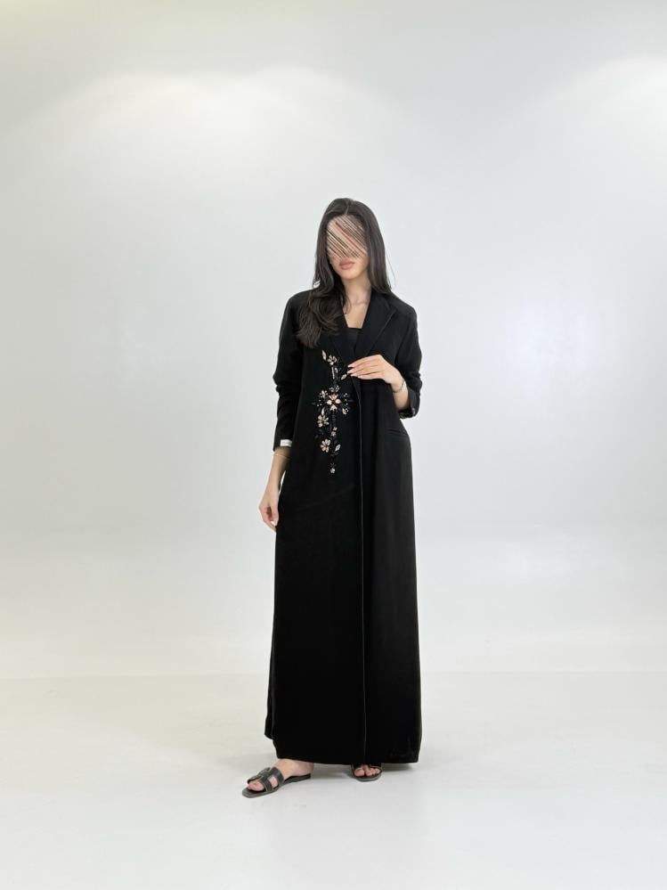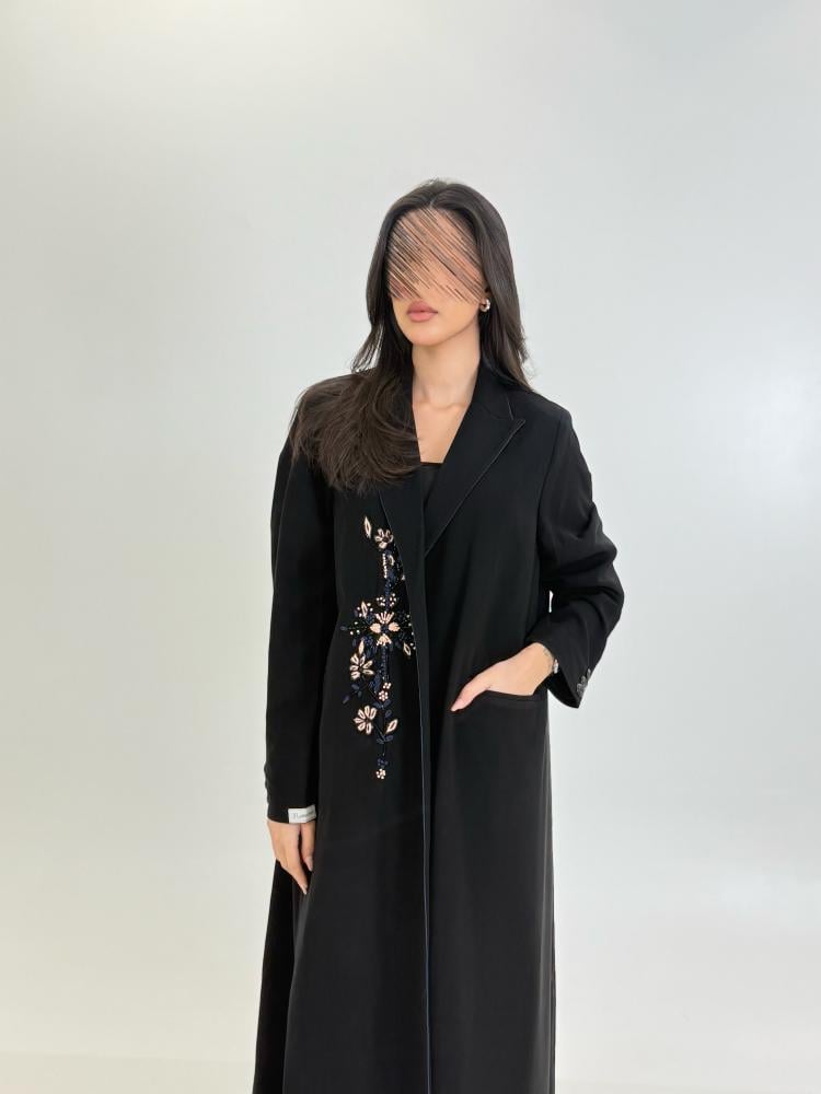 بليزر | عباية جوليا بقماش كريب رموش مزين بحياكه يدويه وشك  كحلي