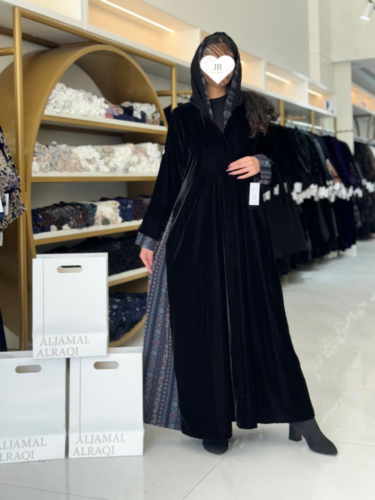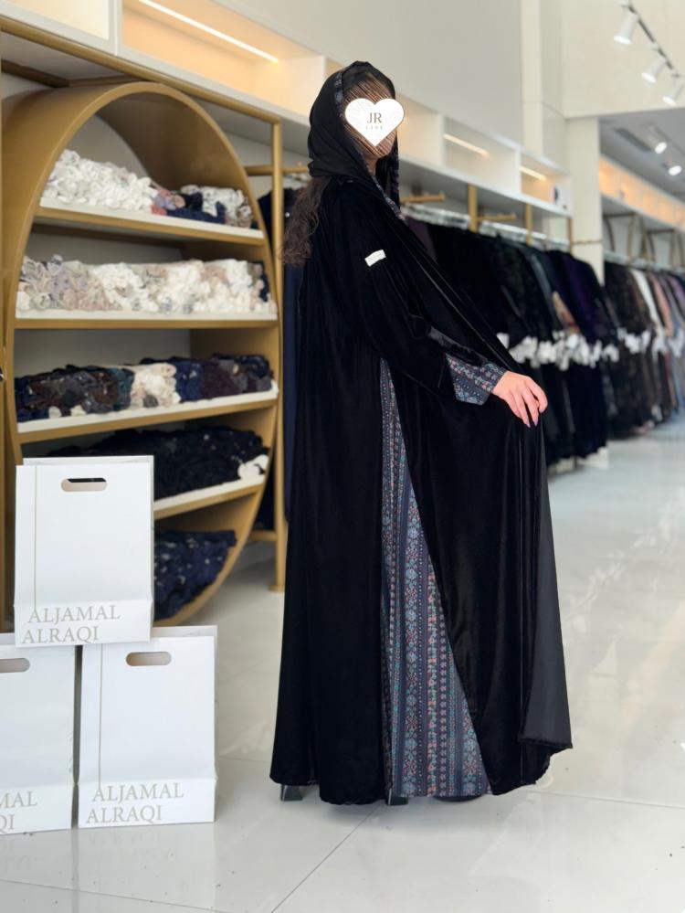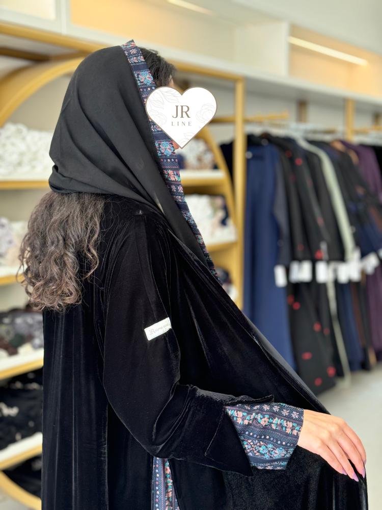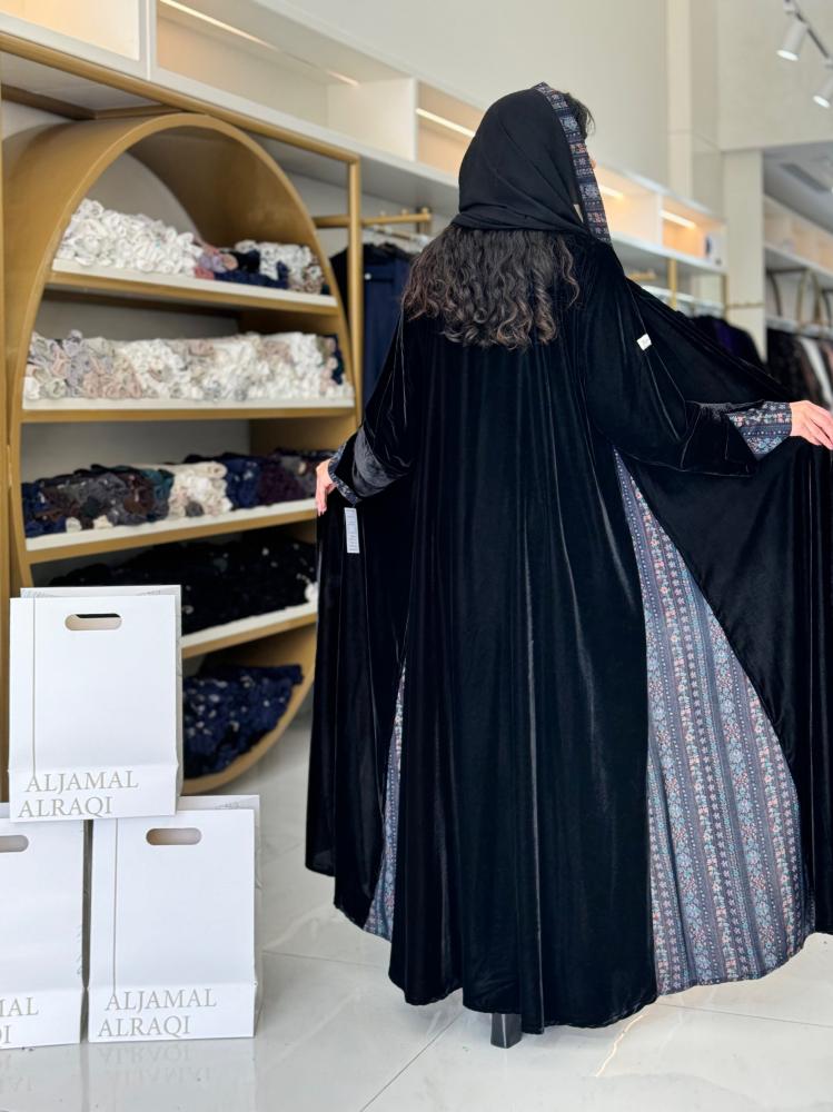 تشكيلة شتاء 2024 - عباية جود كلوش بقماش مخمل تدخيلات كشميري كحلي