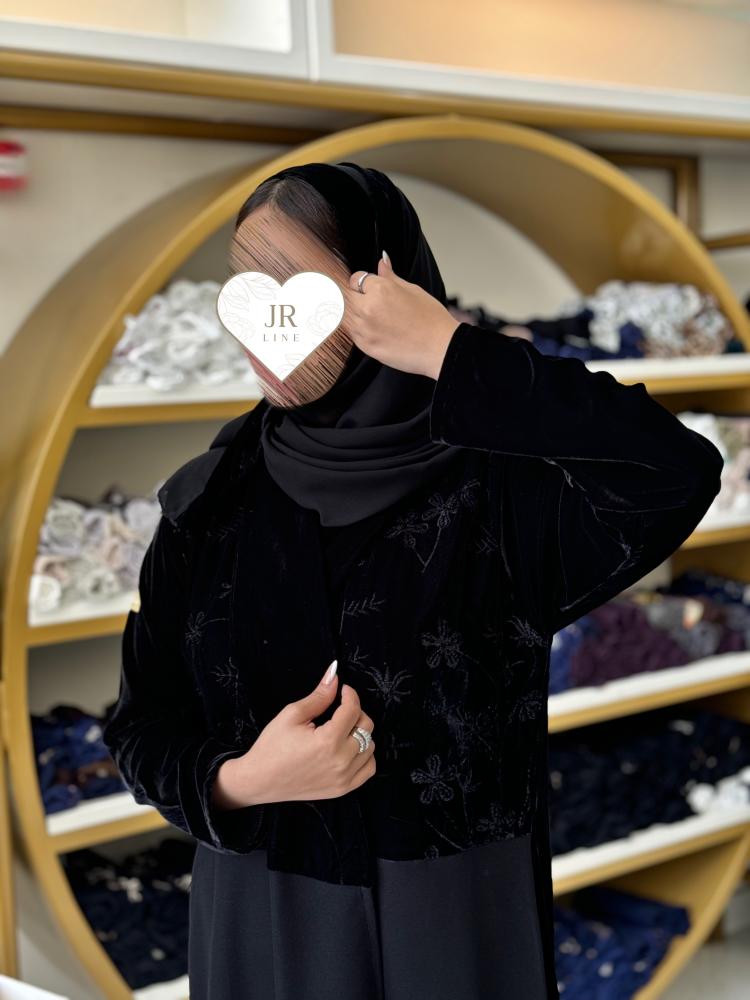 تشكيلة شتاء 2025 - عباية ارانا بقماش مخمل مطرز مع كريب بلاك