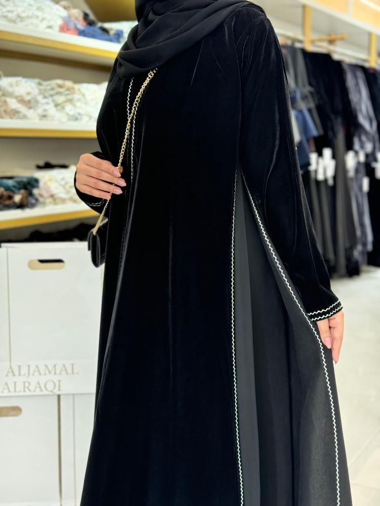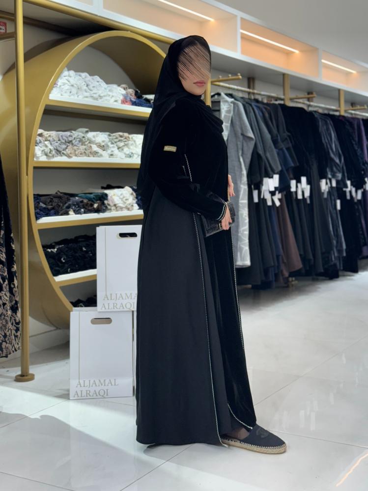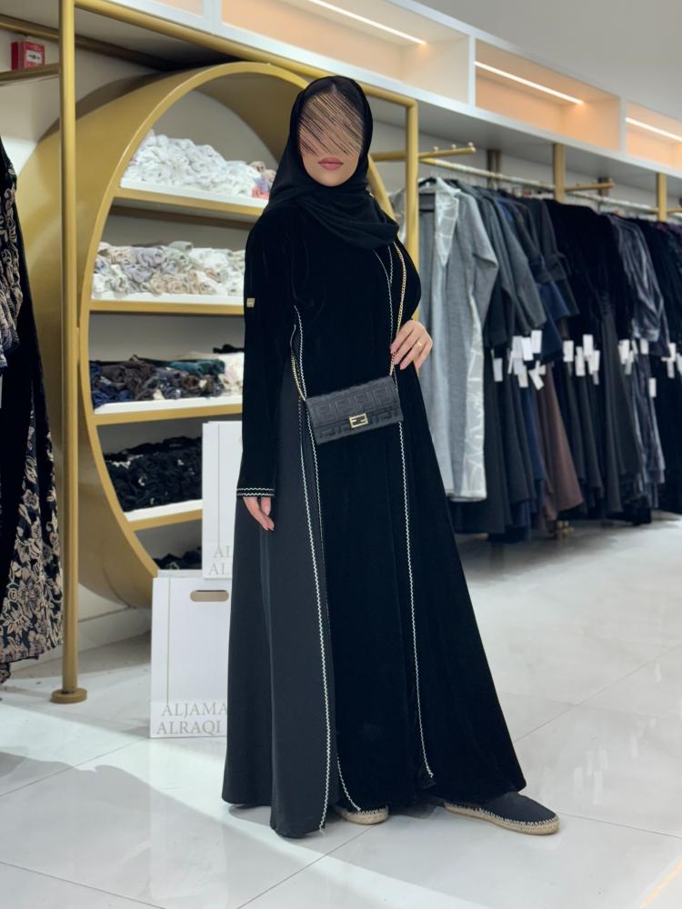 تشكيلة شتاء 2025 -عباية اسراء بلاك بيري ومخمل مع تطريز ناعم ابيض