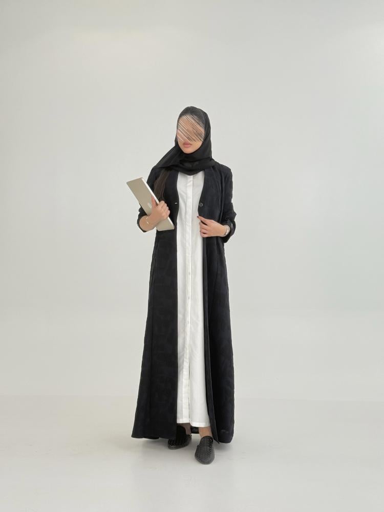 عباية جادي بقماش شاكيرا برسم مربعات كحلي