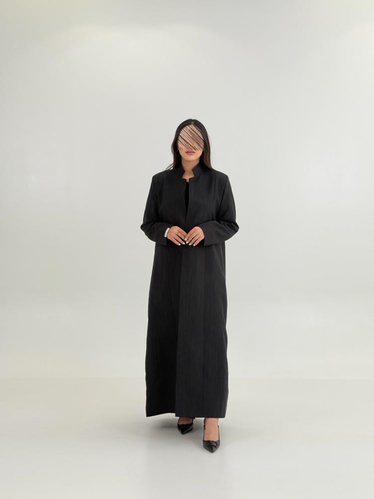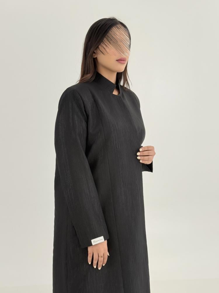 عباية رزان بقصه بليزر بقماش كريب سلك بلمعه خفيفه اسود