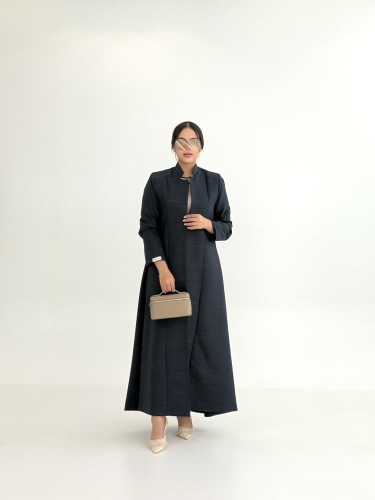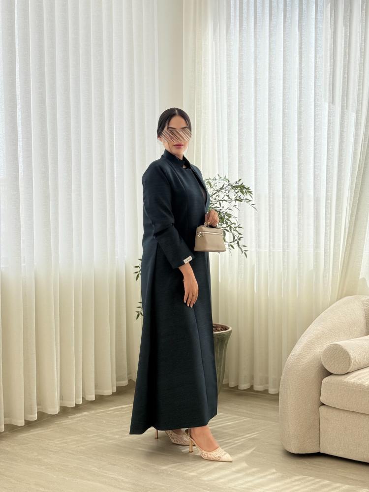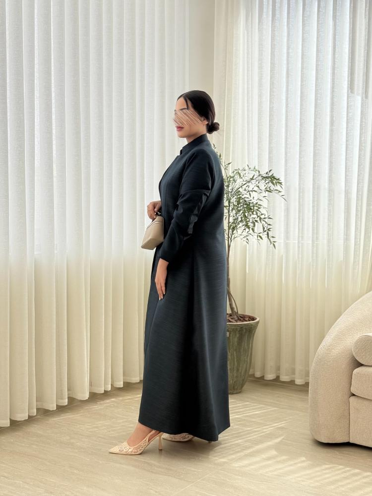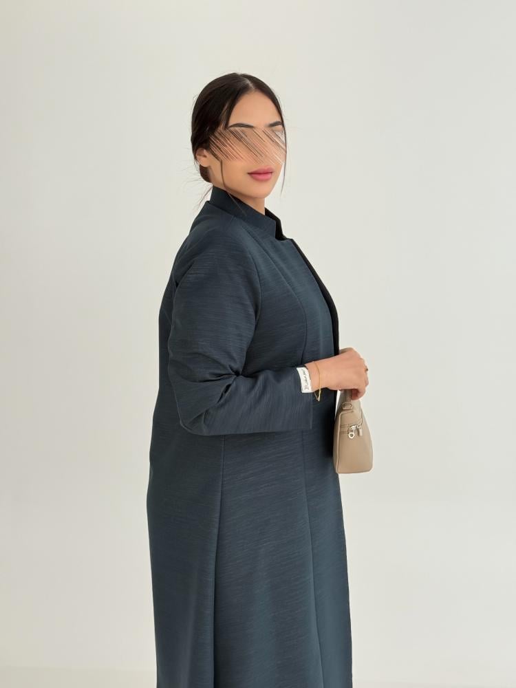 عباية رزان بقصه بليزر بقماش كريب سلك بلمعه خفيفه تركوازي غامق (مبطن)