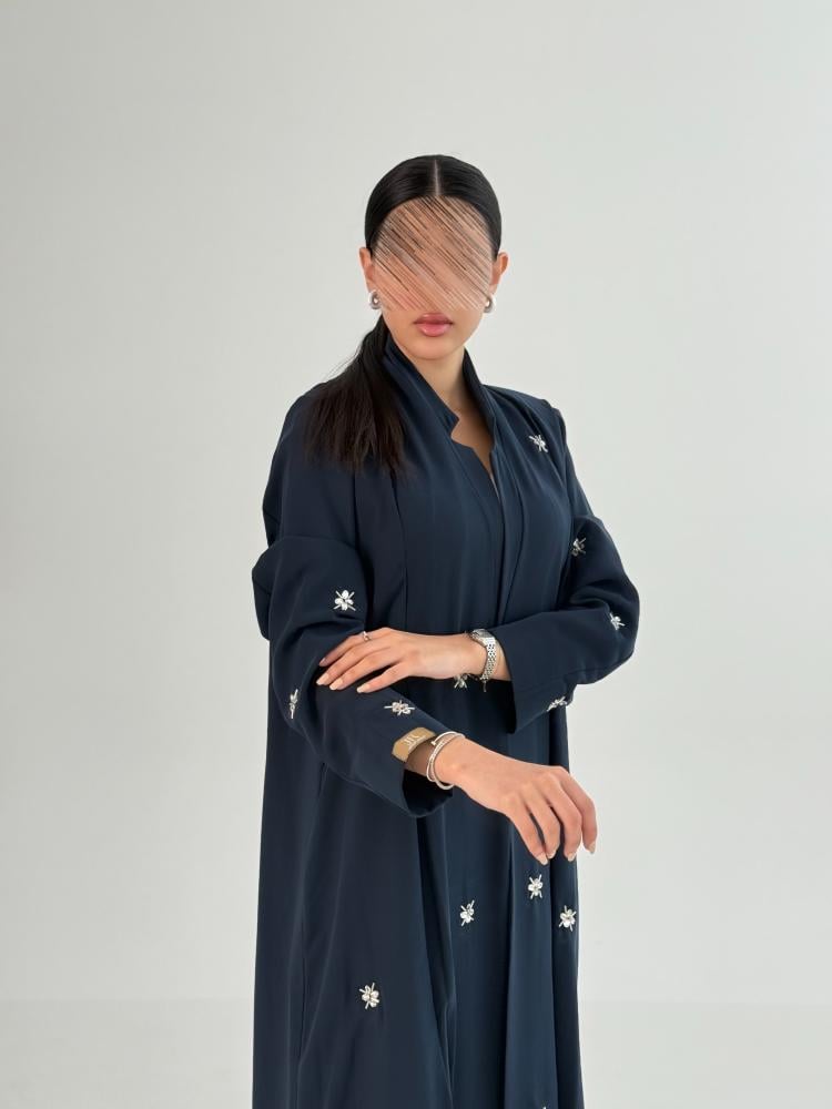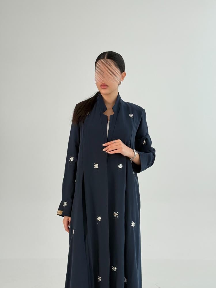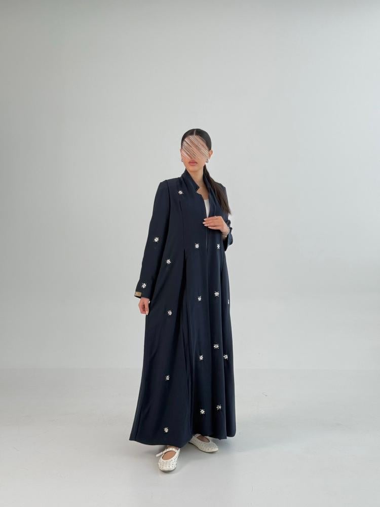 عباية سوار بليزر رسمي مزين بكسرات وشك بقماش كريب رموش تركواز