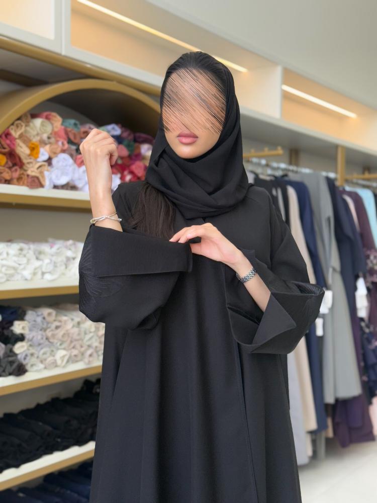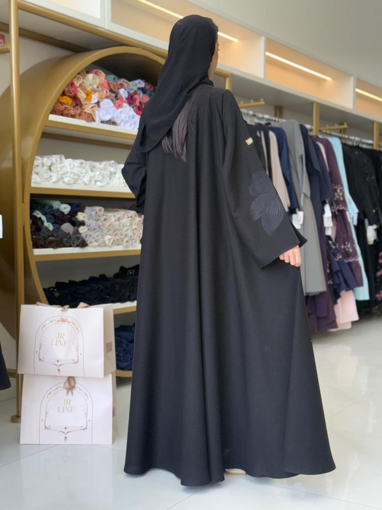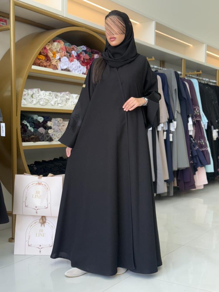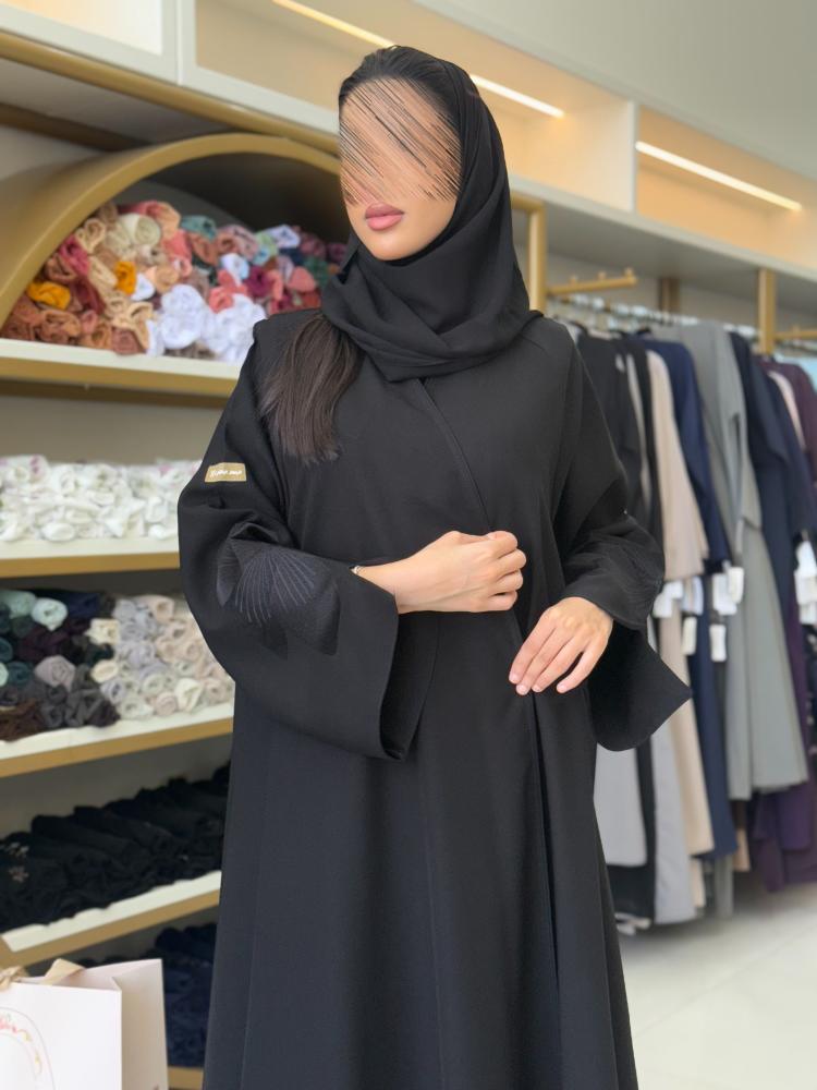 عباية شام بقماش كريب الاناقة تطريز بالكم اسود