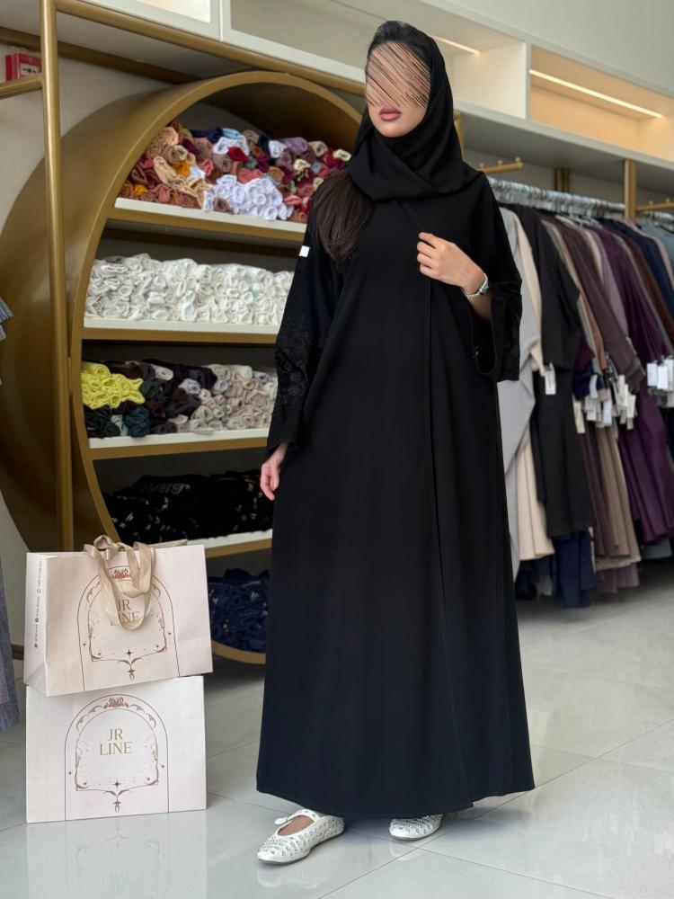 عباية علياء بقماش كريب ملكي تطريز ناعم بالكم 1