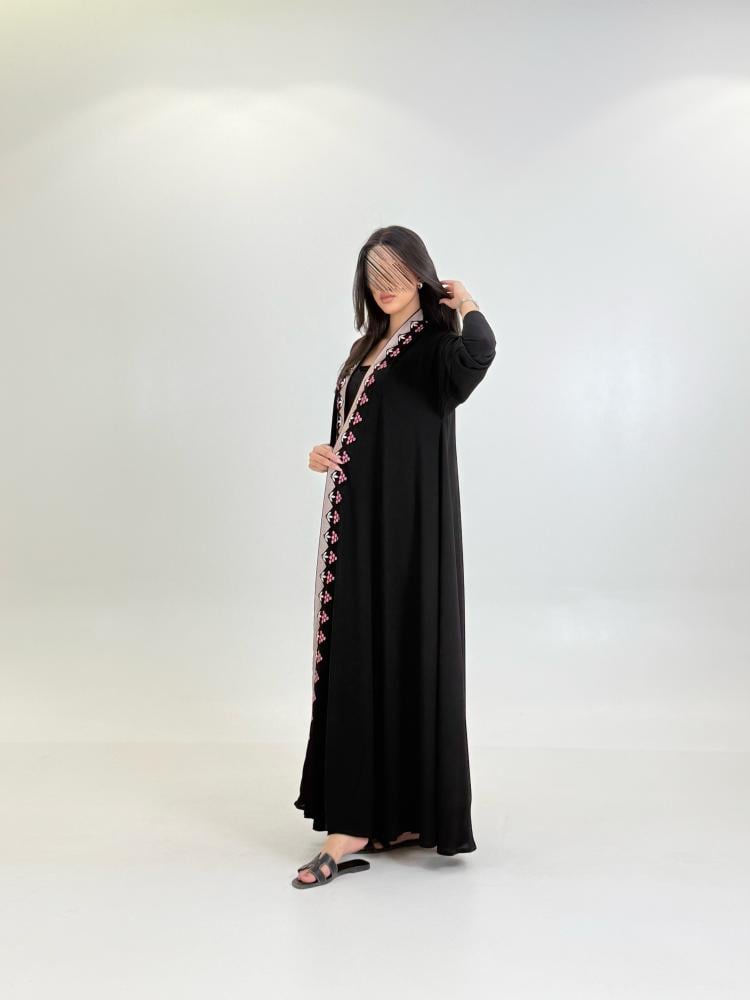 عباية فرحه بقماش ملكي بتطريز كرز دبل كلوش بينك 1