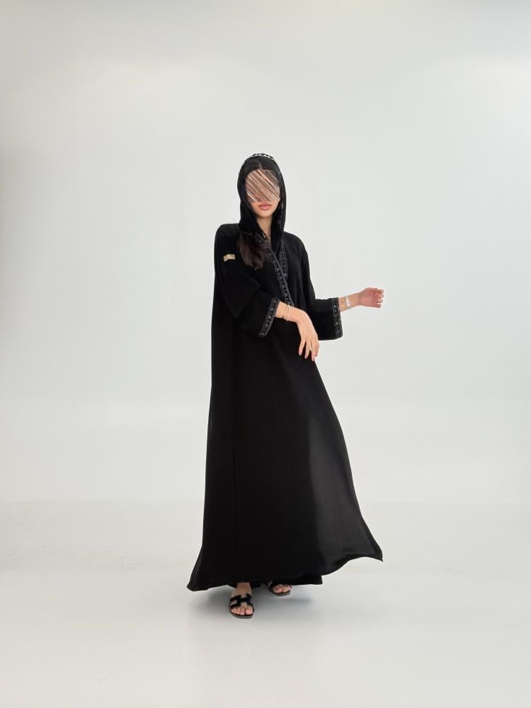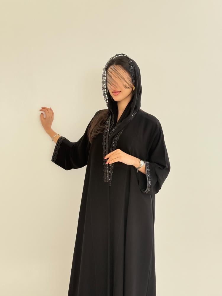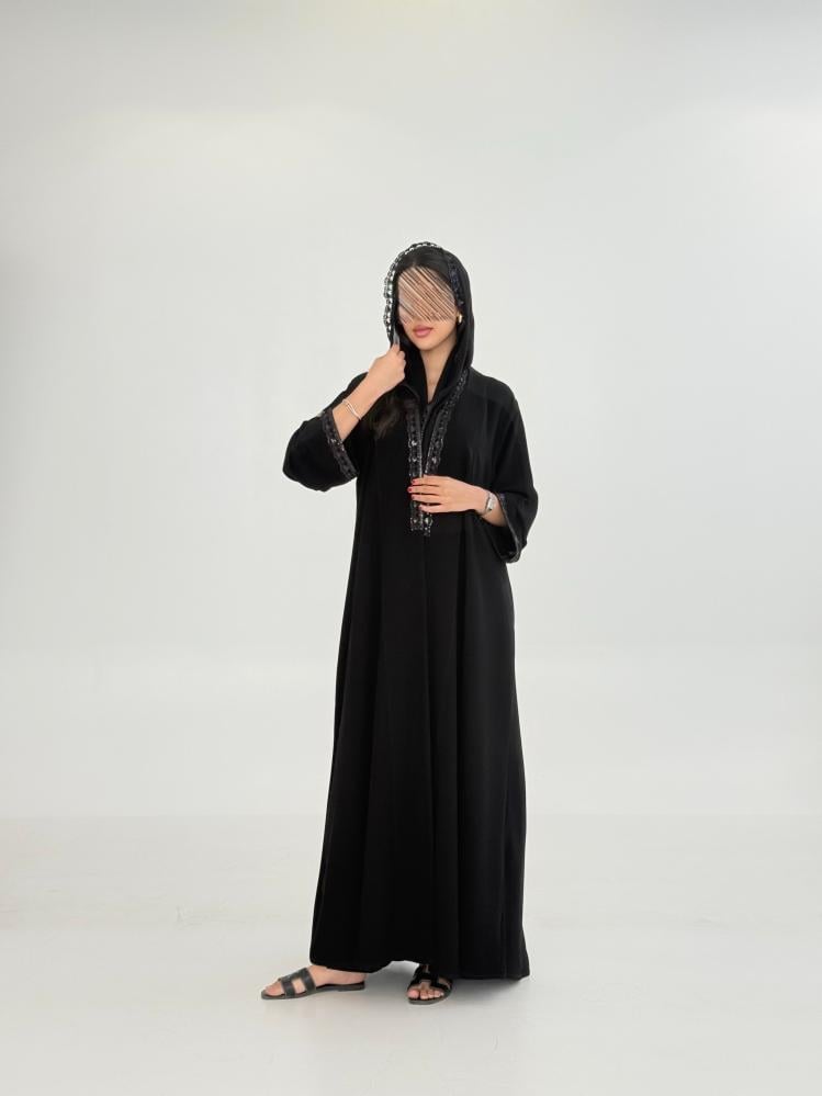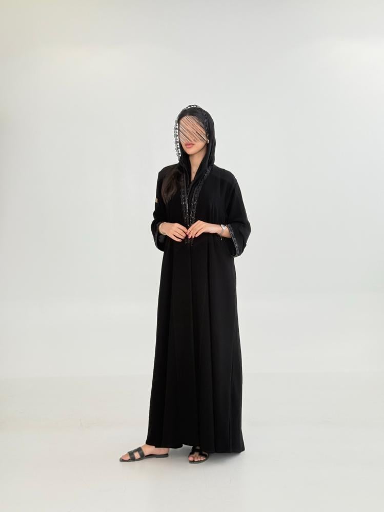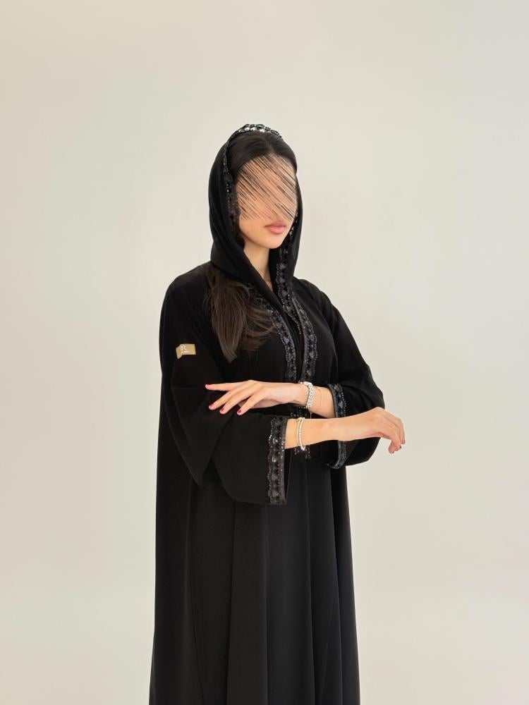 عباية قلتر بقماش كريب ملكي مزين بكلفه ترتر