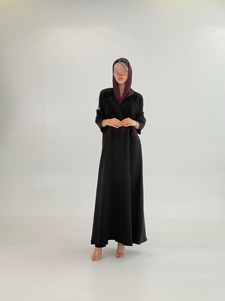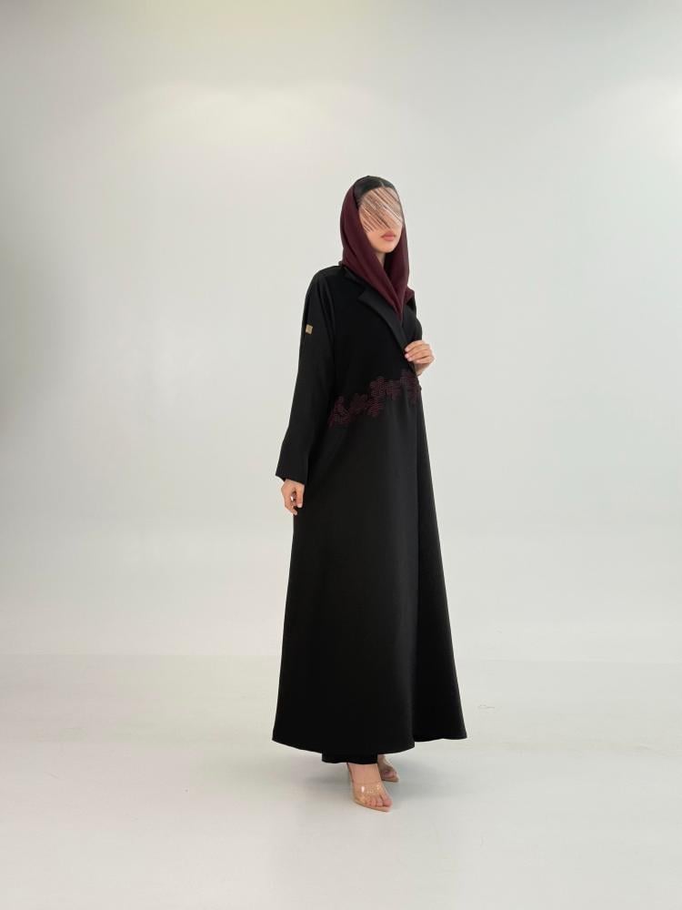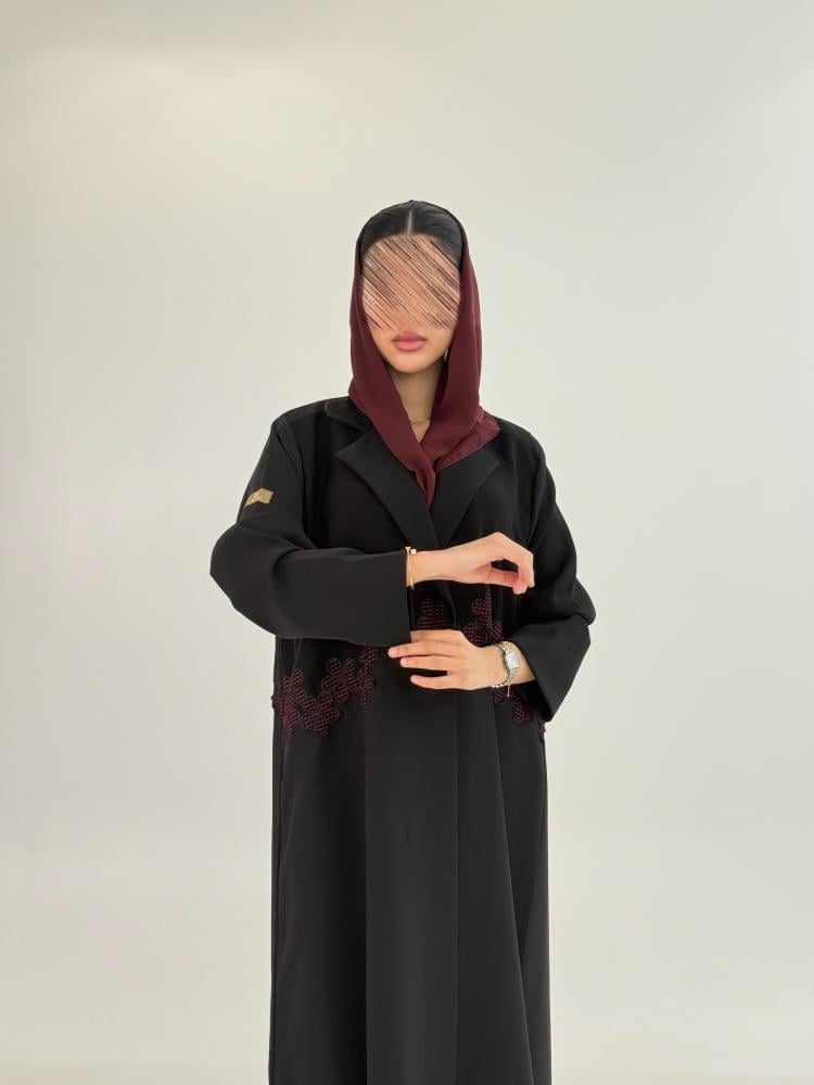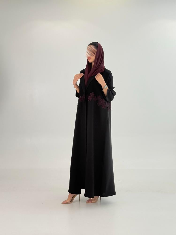 عباية ميسون بقماش كريب لمياء بتطريز كمبيوتر عنابي
